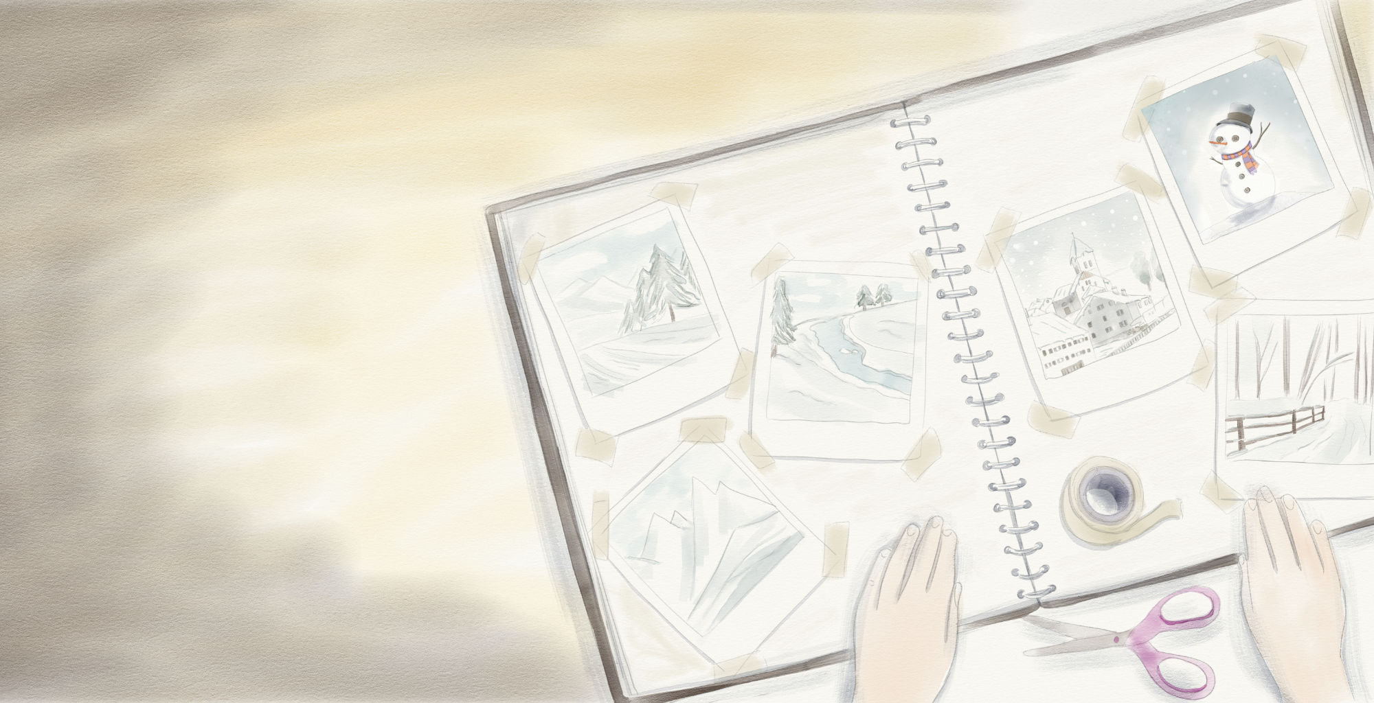 Here as well, I drew and painted the three main characters based on photographs provided by the client.